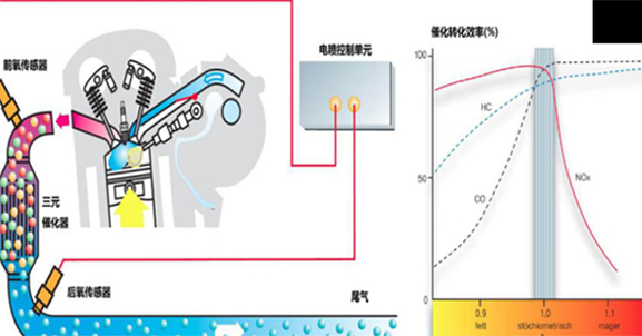 电喷技术就是利用该信号即时调整进入汽缸的燃油和空气的质量比并使其维持在理论空燃比附近, 这样尾气经过三元催化系统后才能达到最佳的净化效果。